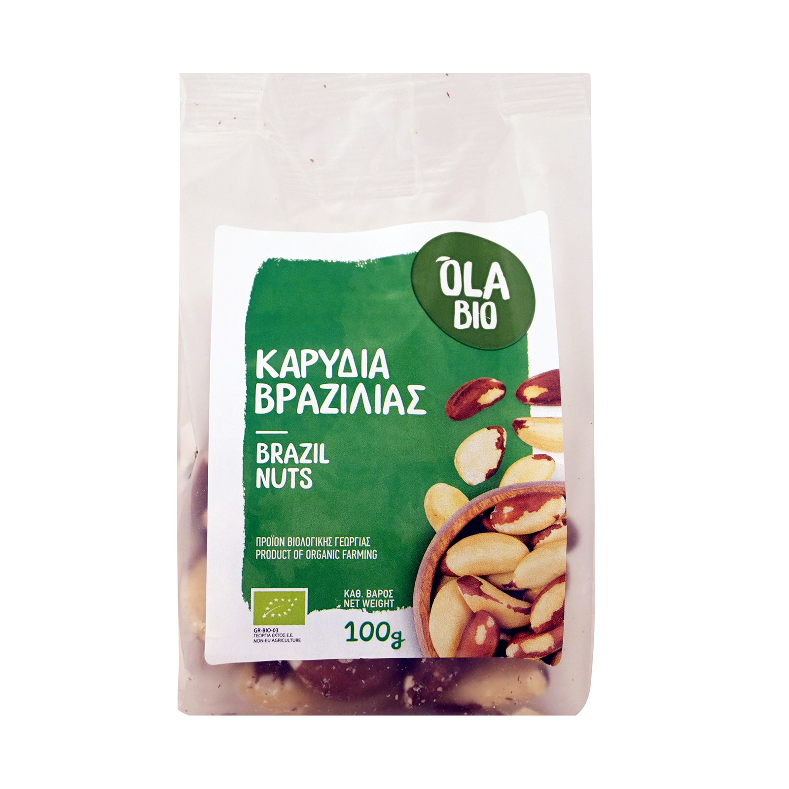 100% καρύδια Βραζιλίας ωμά*. (* Προϊόν βιολογικής γεωργίας). Προϊόν πλούσιο σε σελήνιο (ενδέχεται να περιέχει τμήματα κελύφους). Μπορεί να περιέχει ίχνη και από άλλους ξηρούς καρπούς με κέλυφος, σέλινο, δημητριακά, που περιέχουν γλουτένη, σόγια, σινάπι, γάλα, σησάμι, αυγά, φιστίκια αράπικα (αραχίδες) και προϊόντα αυτών.